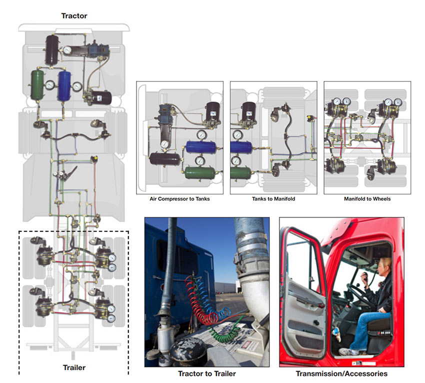 Systemy hamulców powietrznych są stosowane w większości dużych pojazdów użytkowych i autobusów. Ten PIR może pomóc zidentyfikować systemy hamulców powietrznych, które znajdują się w tych pojazdach i opisać ich funkcje i powiązane produkty, które je wspierają. Najpierw sprawdźmy, jak działa system hamulca powietrznego. Systemy hamulców powietrznych można podzielić na podsystemy Fiveive.