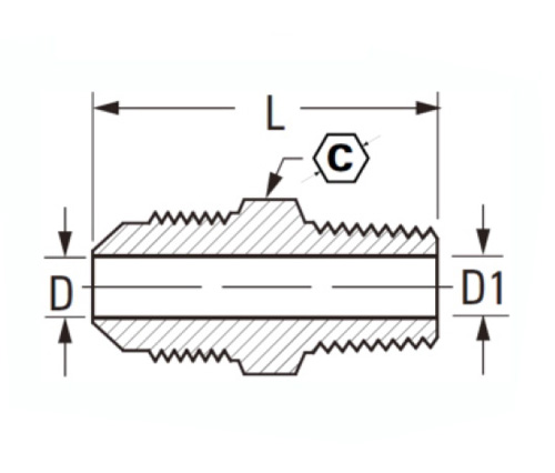 Ta modyfikacja jest zwykle na długości gwintów rurowych, stosowana w hydraulice i lekkich zastosowaniach przemysłowych